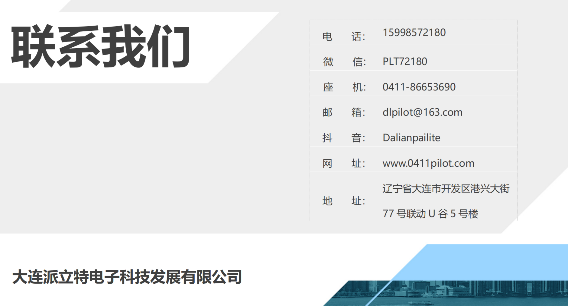 工廠:遼寧省大連市開發(fā)區(qū)海青街道聯(lián)東U谷77-5號  公司:大連派立特電子科技發(fā)展有限公司